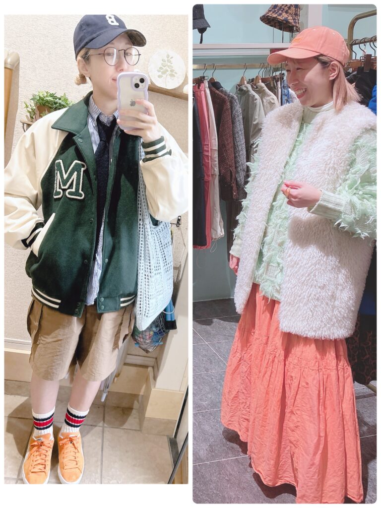 私は左のようなトラッドスタイルと、右のような明るい色でカラフルにコーデするのとどちらも大好きです。