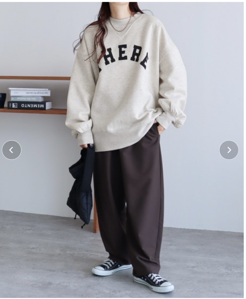 似た色味のロゴスウェットですが、サイズ感によって雰囲気が大きく変わってきます。